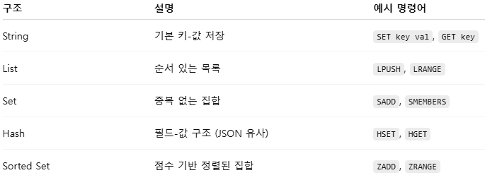 - 초고속 성능: 메모리에 저장되어 빠른 읽기/쓰기 가능
